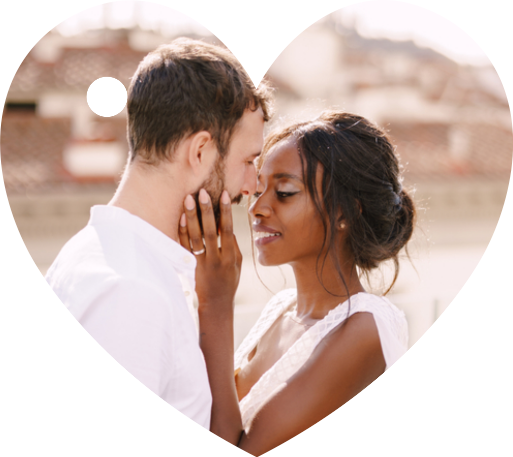 Hartvormig label voor bij trouwkaart met foto