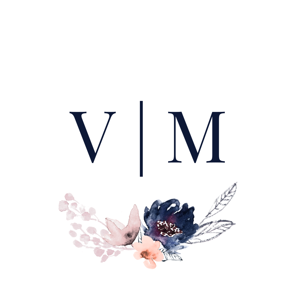 Vierkant label voor trouwkaart met initialen en watercolour bloemen