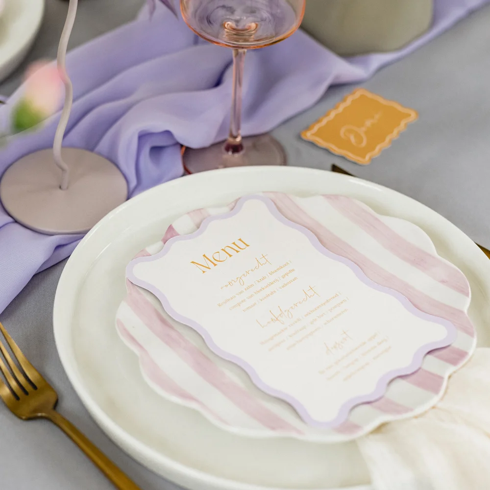 Goed om te weten: dit design bevat een kader. Omdat de kaarten na het drukken op een groot vel pas worden uitgesneden op het juiste formaat, kan het zijn dat het kader íetsje smaller of breder uitvalt. Dit gaat slechts om een paar millimeter, maar we willen het wel graag vermelden.