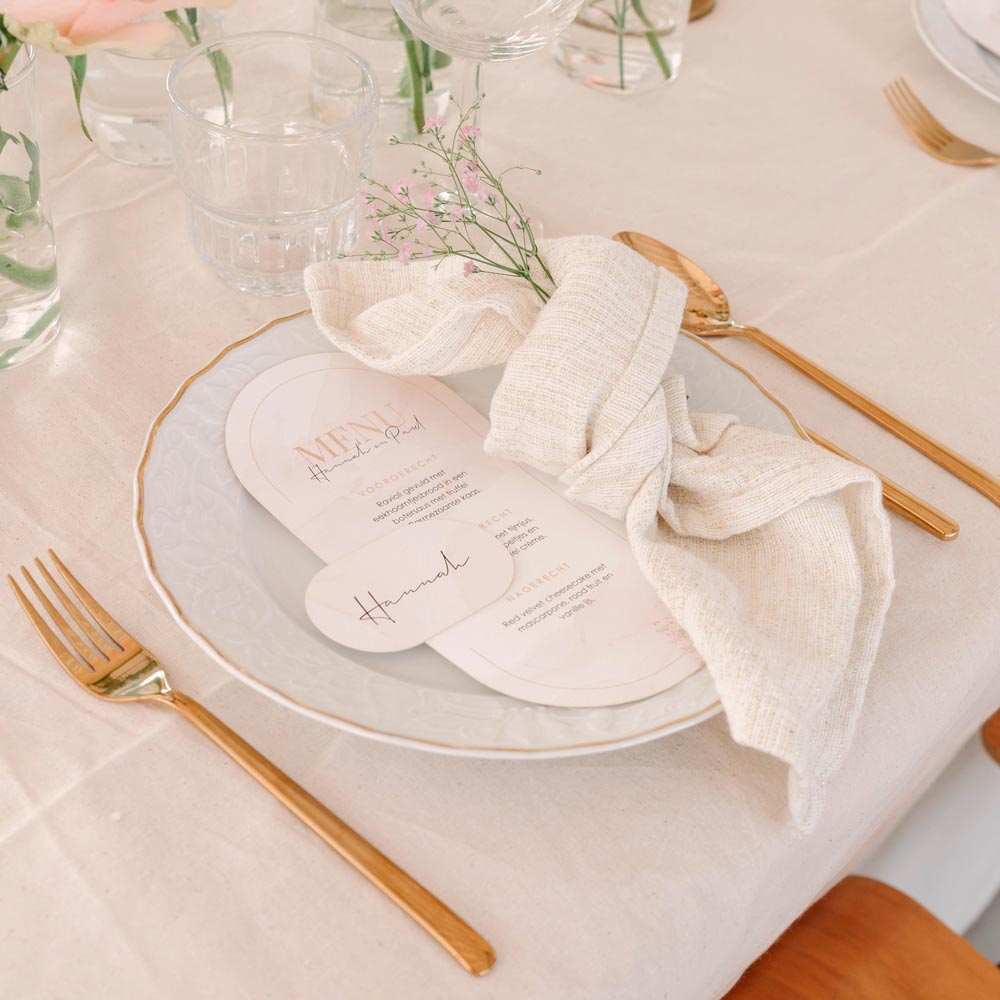 Menukaart romantisch watercolour goudlook met optioneel naamkaartje