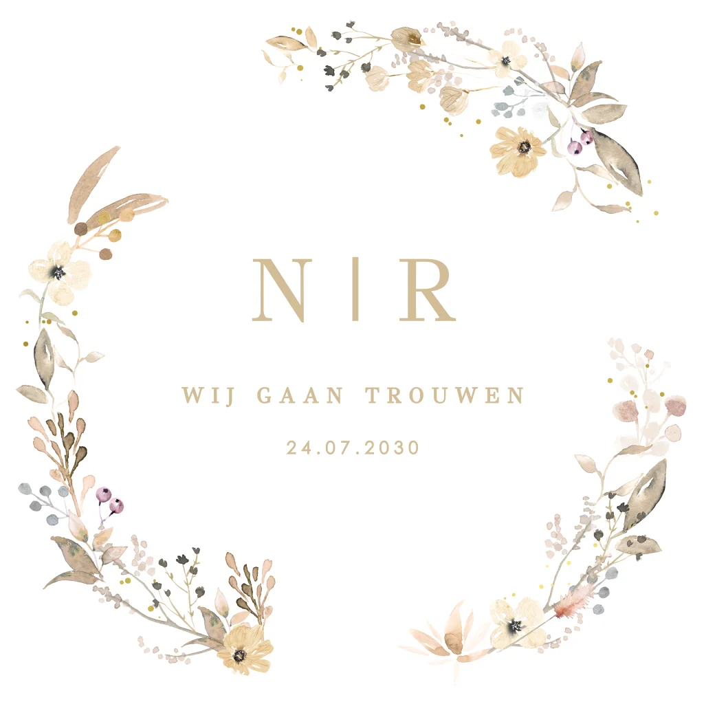 Deze trouwkaart maakt deel uit van een complete set in deze stijl.
