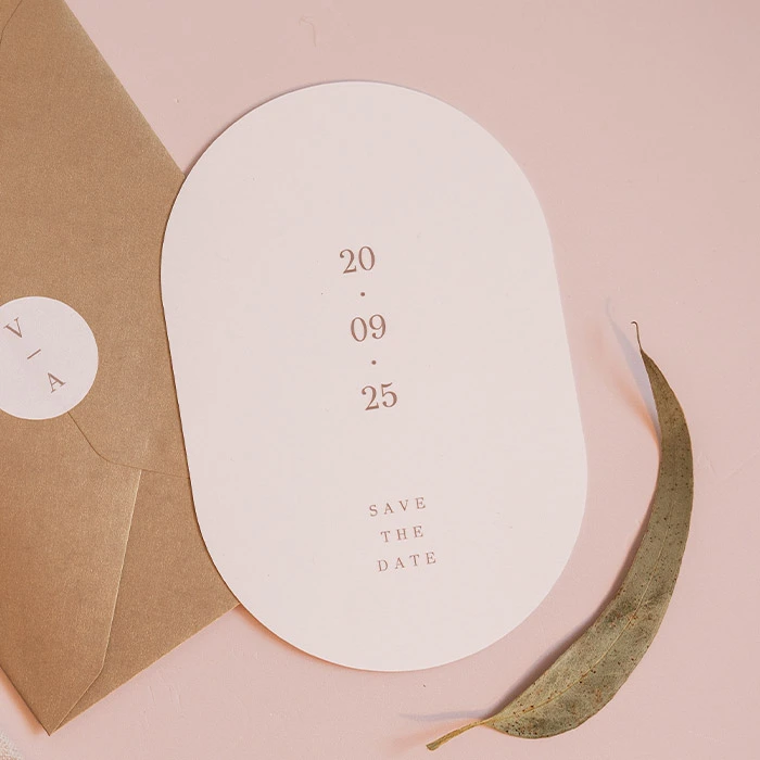 Kies voor deze Save the Date kaart in een originele vorm, namelijk ovaal.