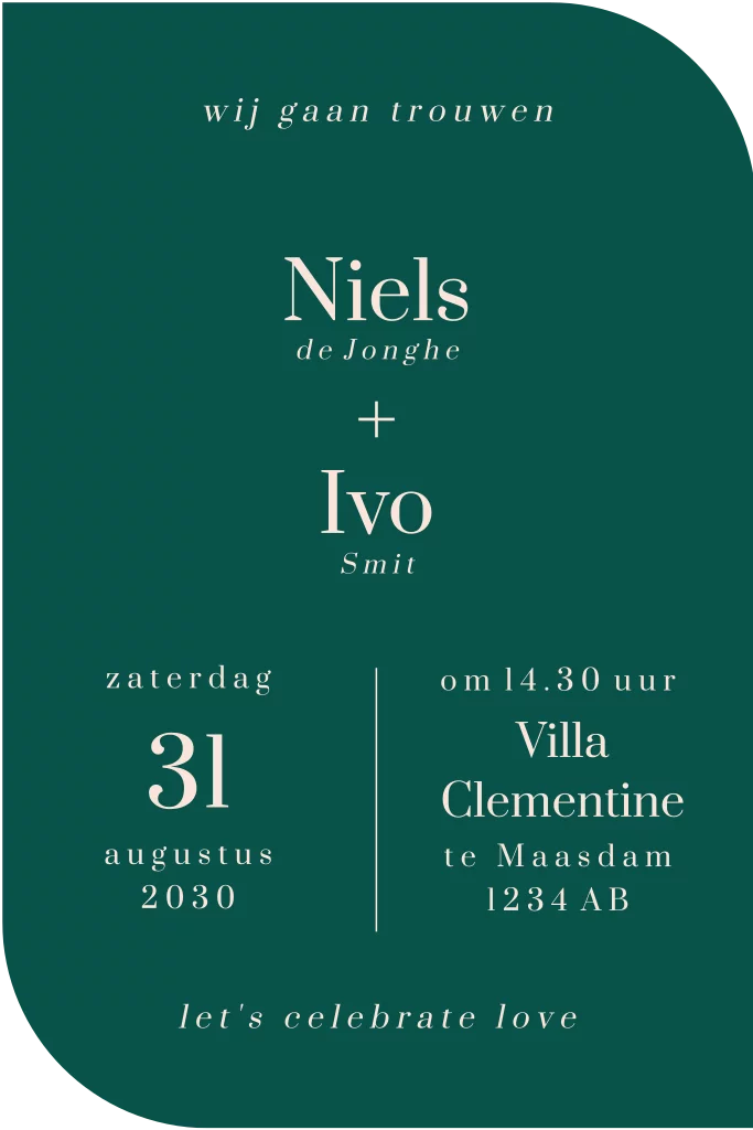 Deze trouwkaart maakt deel uit van een complete set in deze stijl.