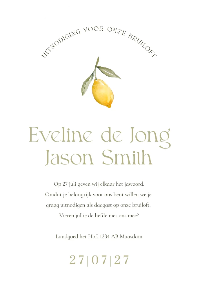 Deze trouwkaart maakt deel uit van een complete set in deze stijl.