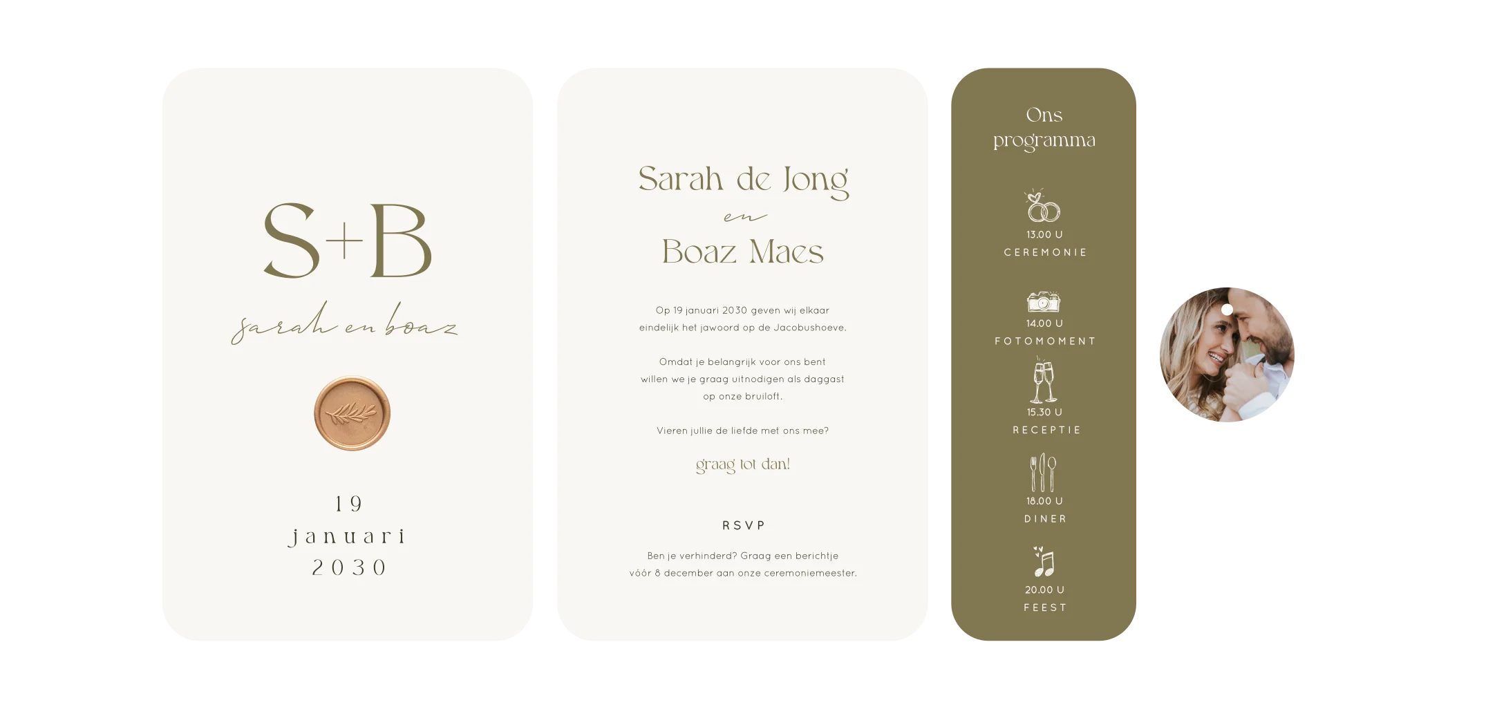 Deze trouwkaart maakt deel uit van een complete set in deze stijl.