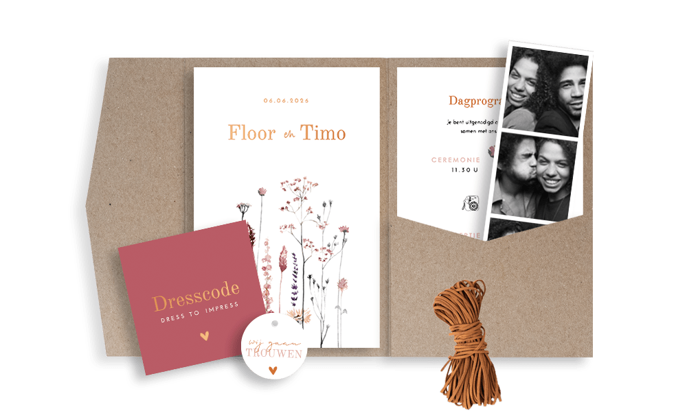 Deze trouwkaart maakt deel uit van een complete set in deze stijl.
