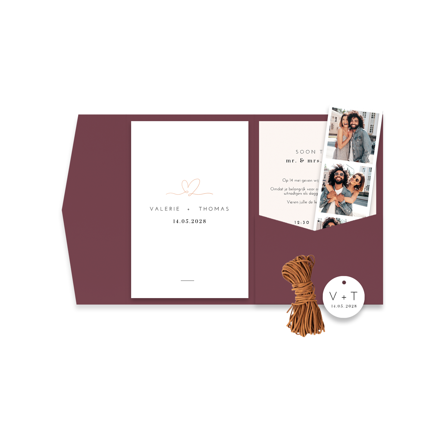 Good to know: houd er bij het verzenden van de pocketfolds rekening mee dat het pakketje wat zwaarder is dan normaal. Eén postzegel is waarschijnlijk niet voldoende. Check dit dus even bij je proefdruk!Plaats zelf de teksten en elementen eenvoudig op de juiste plek in onze opmaaktool. Heb je hier hulp bij nodig? Neem gerust even contact met ons op!