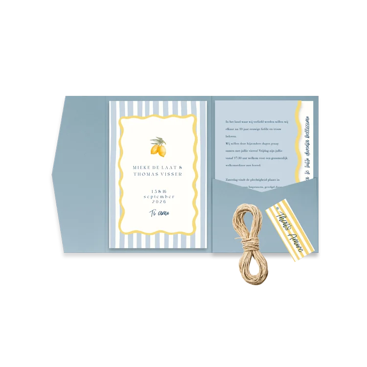 Trouwkaart pocketfold Italiaanse bruiloft met citroenen