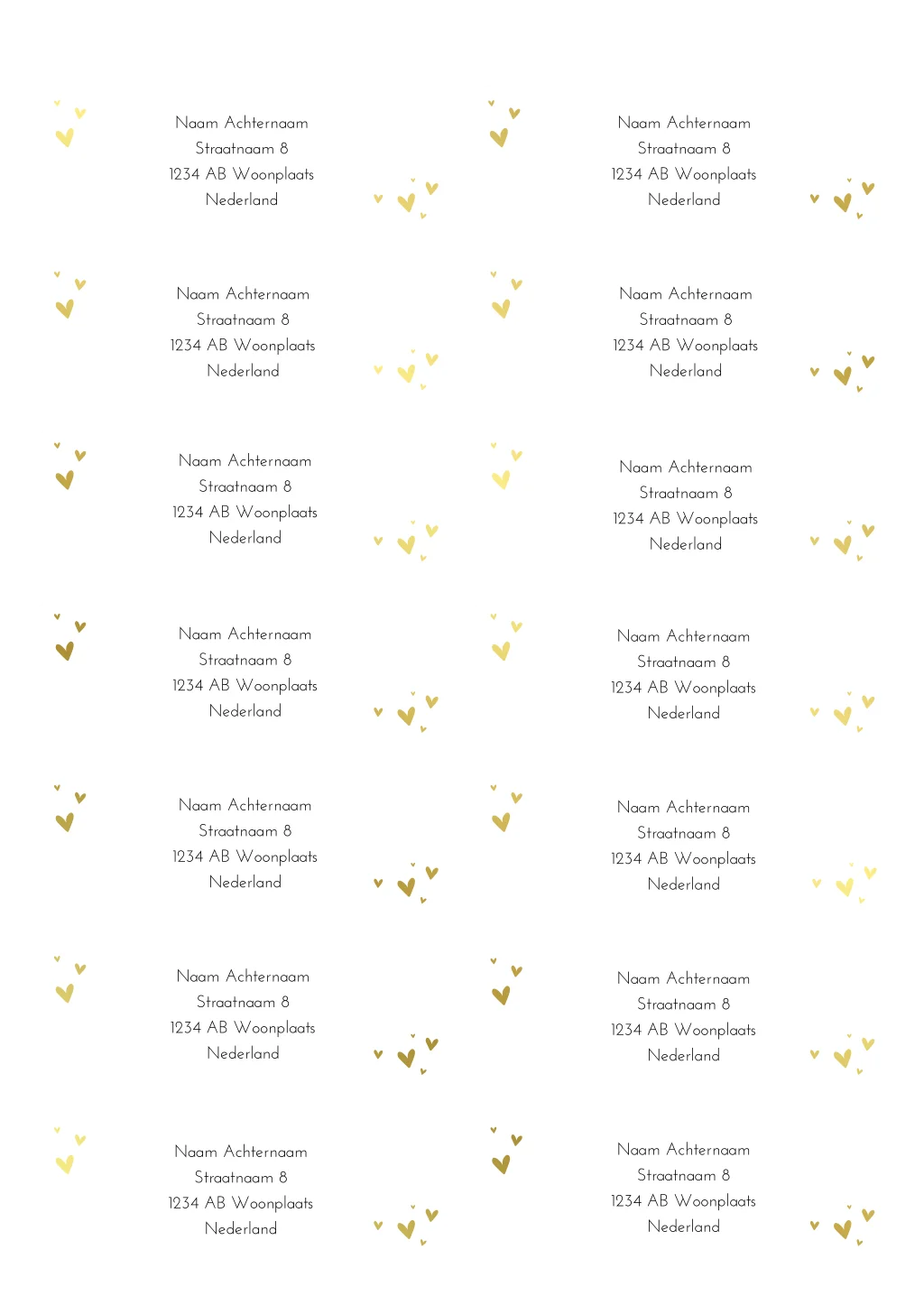 Adressticker met goudfolie hartjes | 14 stuks