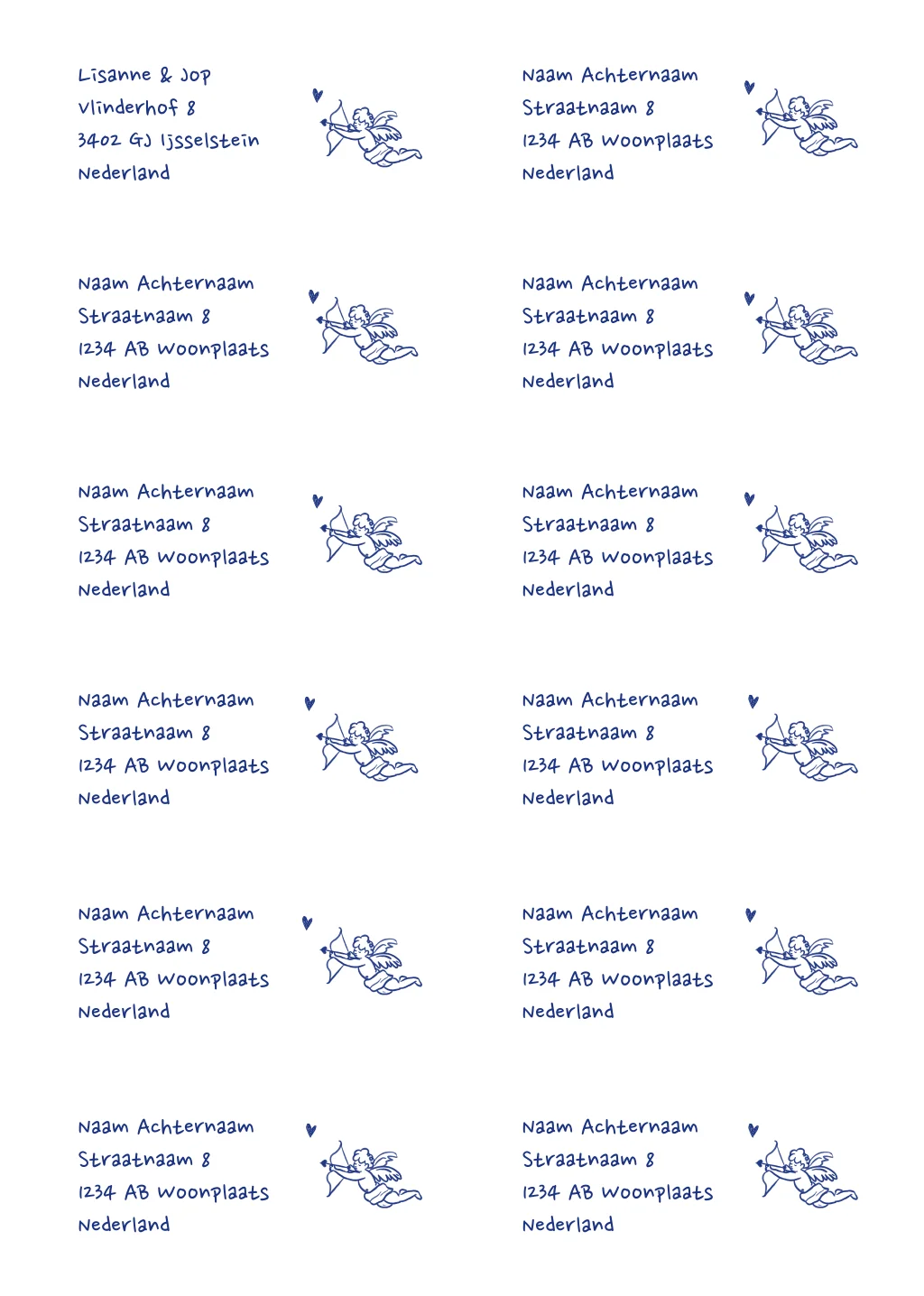 Hoe leuk zijn deze adresstickers in stijl van je trouwkaart? Naast dat je het design helemaal kan aanpassen, plaats je heel eenvoudig zelf alle adressen op de adresstickers.