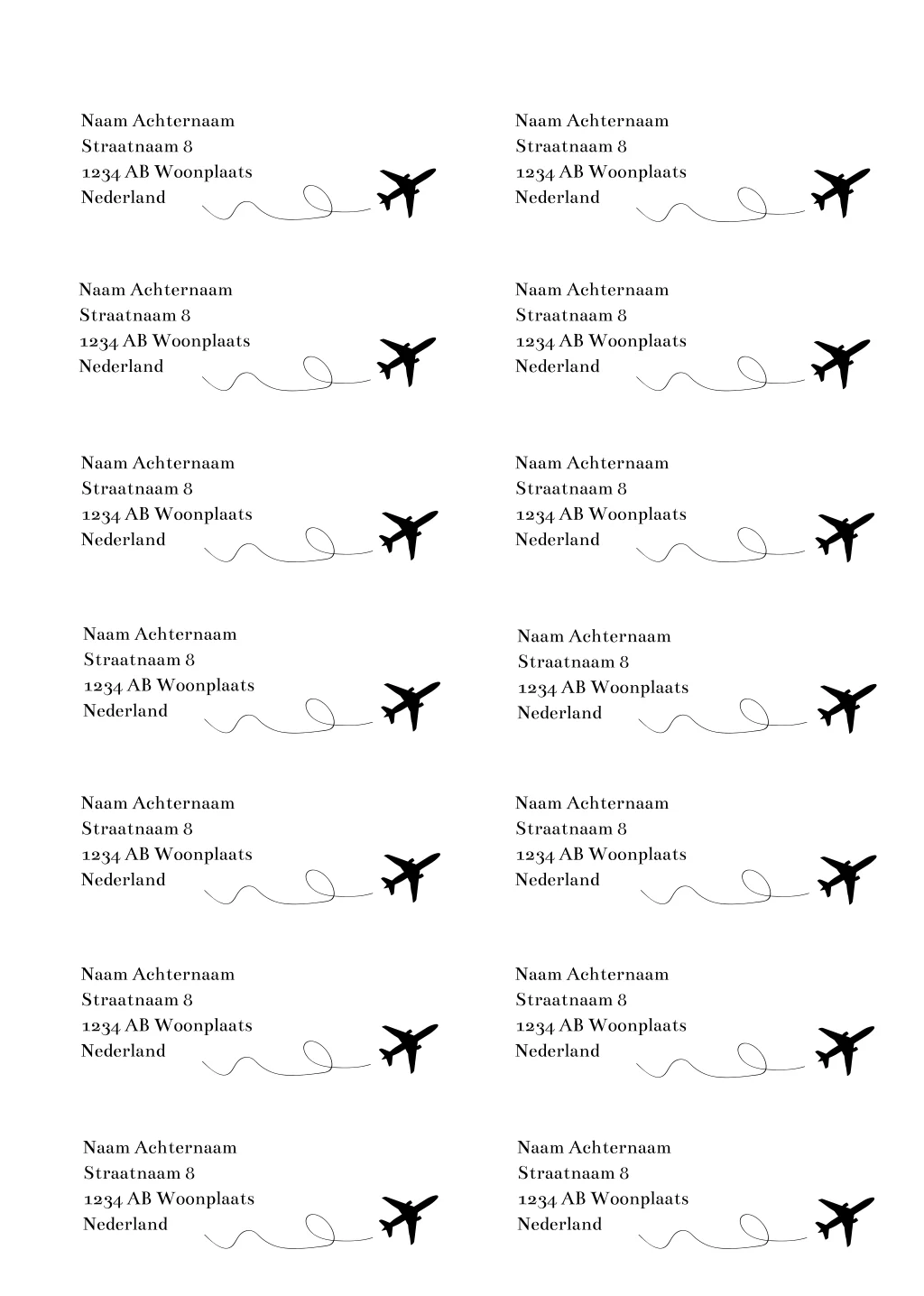 Adresstickers voor bruiloft met vliegtuig