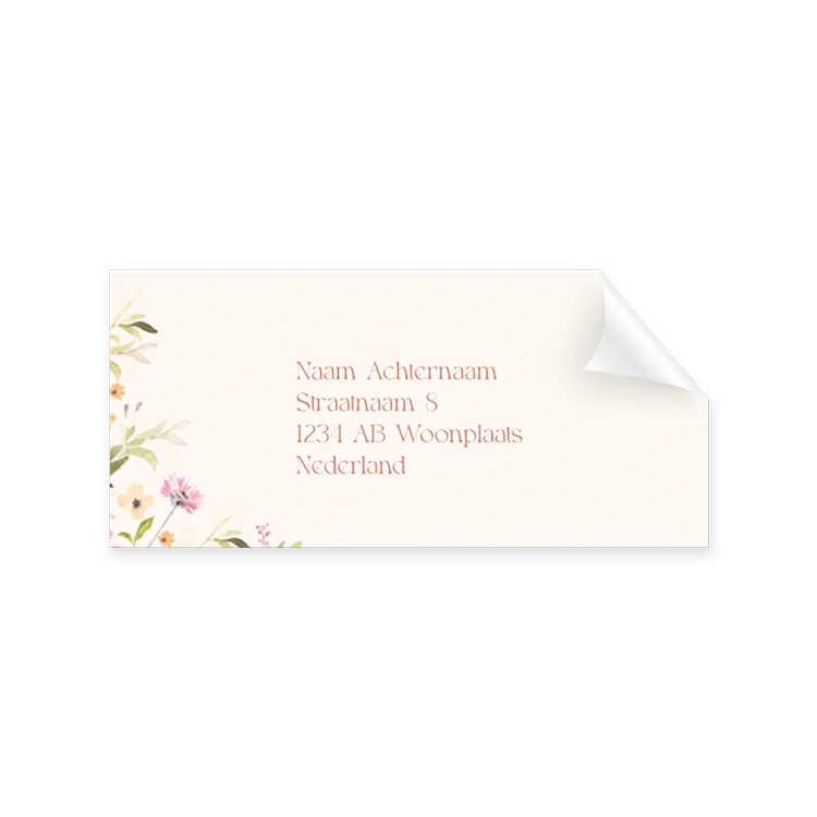 Hoe mooi zijn deze adresstickers in stijl van je trouwkaart? Deze stickers hebben prachtige handgeschilderde veldbloemen, zo romantisch! Naast dat je het design helemaal kan aanpassen, plaats je heel eenvoudig zelf alle adressen op de adresstickers.
