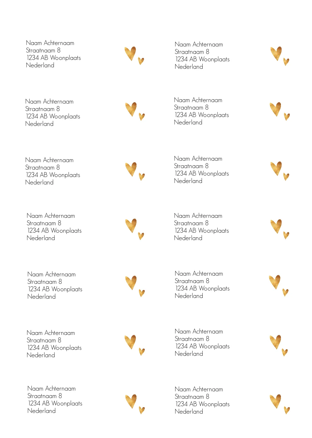 Aresstickers voor trouwkaart met goudlook hartjes