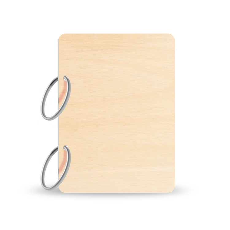 Deze bewaarbundel is gemaakt van multiplex hout, heeft afgeronde hoeken en twee metalen ringen. Je kunt de voorzijde van de bundel naar wens personaliseren in de editor. Onwijs leuk voor het bewaren van alle huwelijks felicitatiekaarten van jullie geliefden.