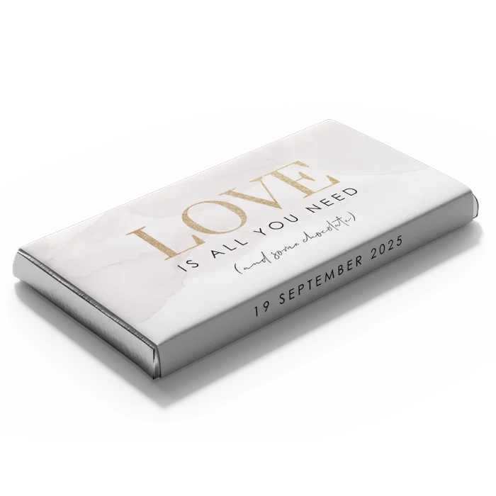 Verras jullie bruiloftsgasten met deze chocoladereep met gepersonaliseerde wikkel!