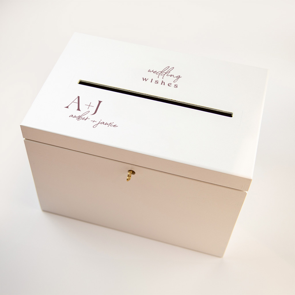Hoe leuk is deze stijlvolle enveloppenkist in neutrale kleuren met aubergine accenten?!