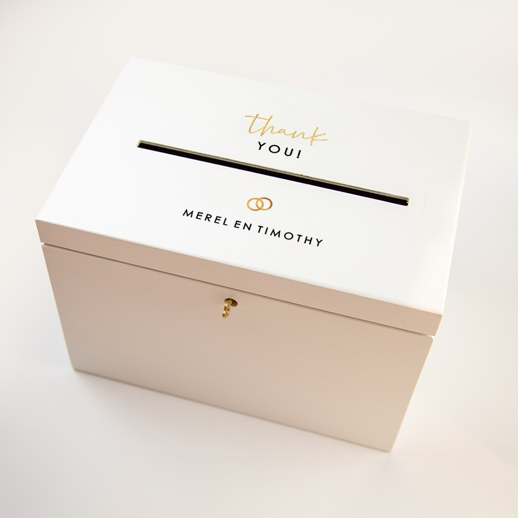 Hoe leuk is het om jouw enveloppen te bewaren in deze unieke enveloppenkist in dezelfde stijl als jullie trouwkaart?