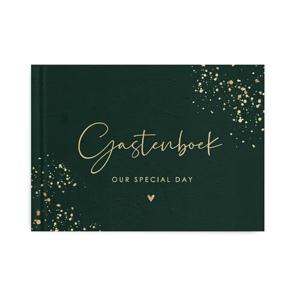 Stijlvol gastenboek donkergroen met gouden spetters
