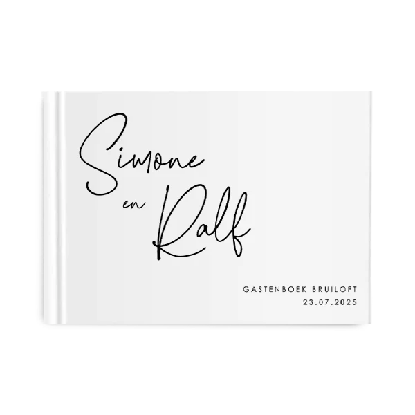 Een mooi kalligragisch gastenboek in stijl van jullie trouwkaart, een écht bewaaritem.