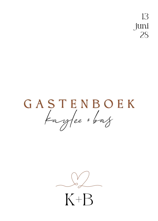 Een houten gastenboek met stijlvolle belettering en hartje. Het boek heeft 2 ringen om zelf binnenwerk in te bundelen.