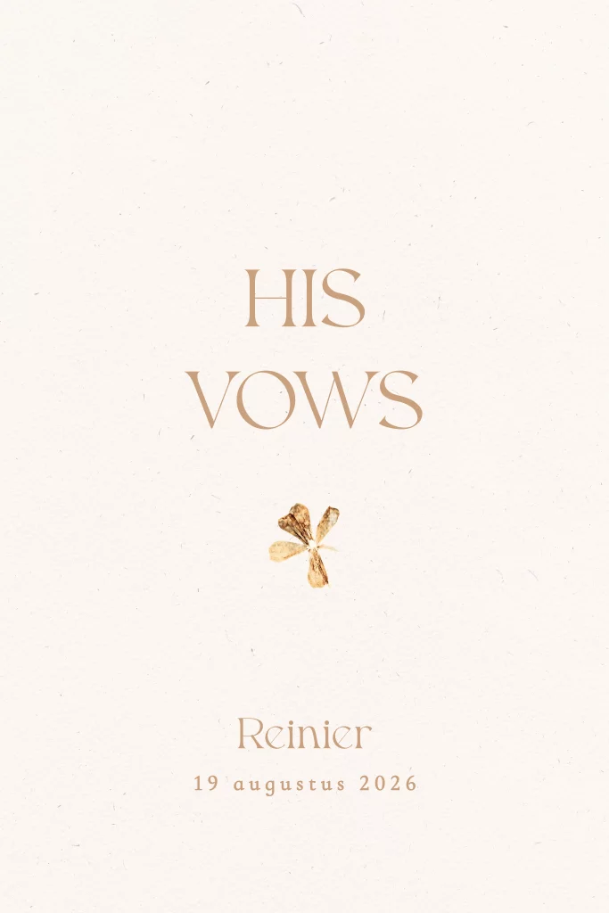 Wil je dat het uitspreken van je geloften vlekkeloos verloopt? Schrijf je geloften dan in dit stijlvolle boekje. Bovendien ziet dit boekje er ook nog eens heel mooi uit.