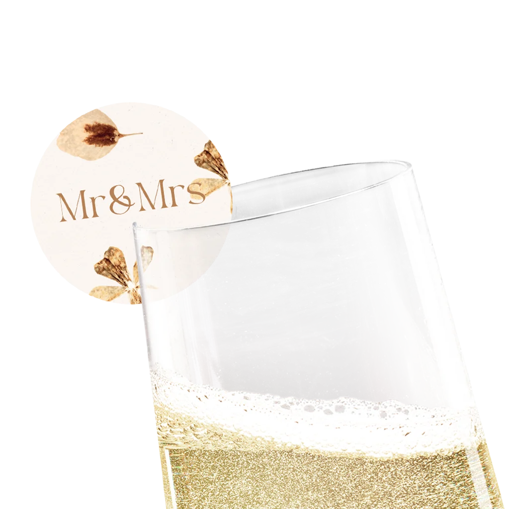 Maak jullie bruiloft helemaal compleet met deze glaslabels in dezelfde stijl als jullie trouwkaart! Je schuift het label gemakkelijk aan het glas.