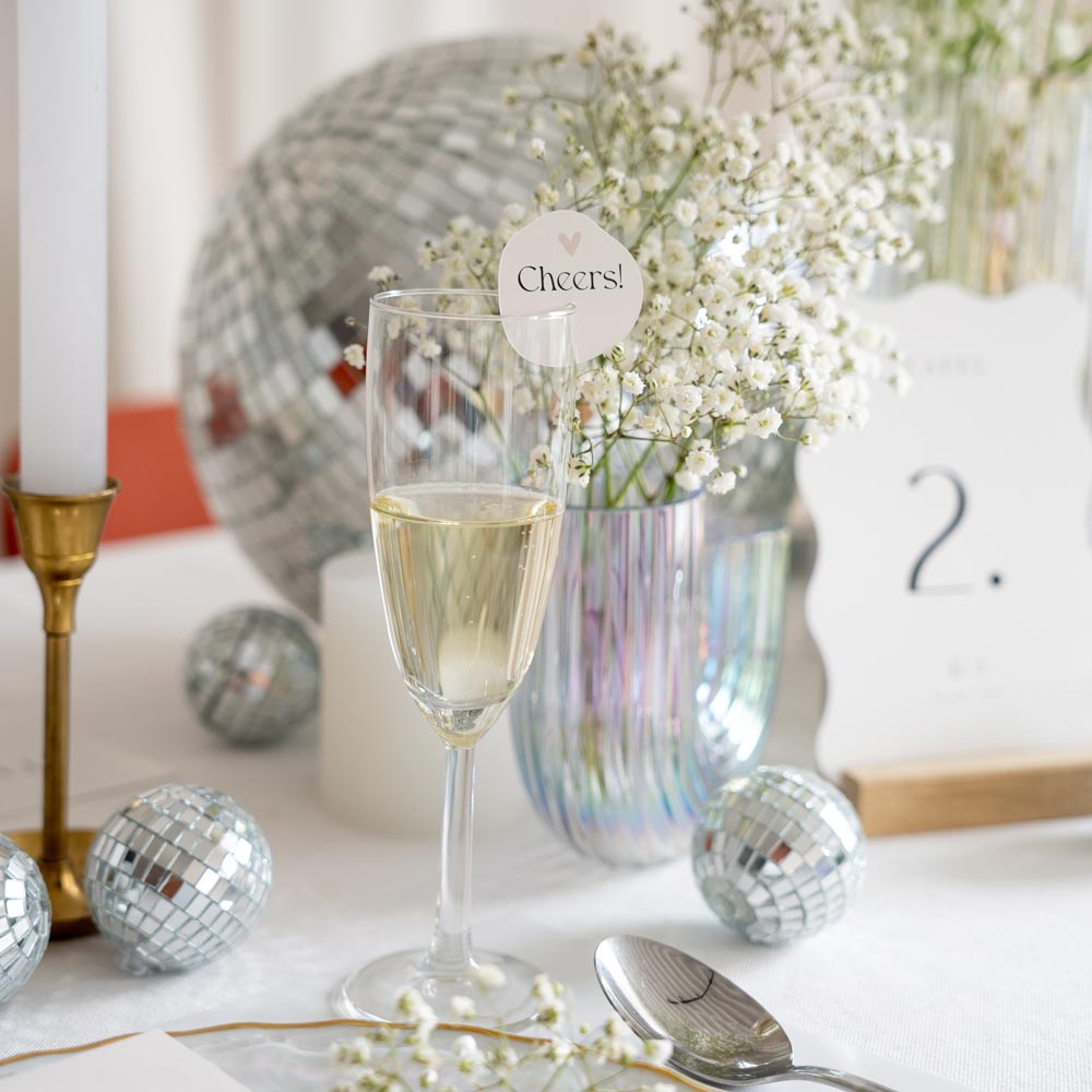 Maak jullie bruiloft helemaal compleet met deze glaslabels in dezelfde stijl als jullie trouwkaart! Je schuift het label gemakkelijk aan het glas.