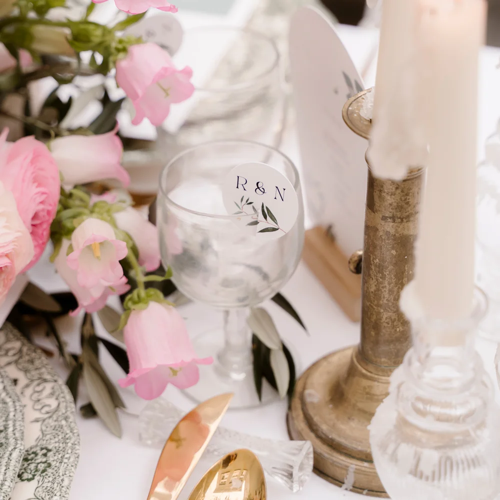 Maak jullie bruiloft helemaal compleet met deze glaslabels in dezelfde stijl als jullie trouwkaart! Je schuift het label gemakkelijk aan het glas.