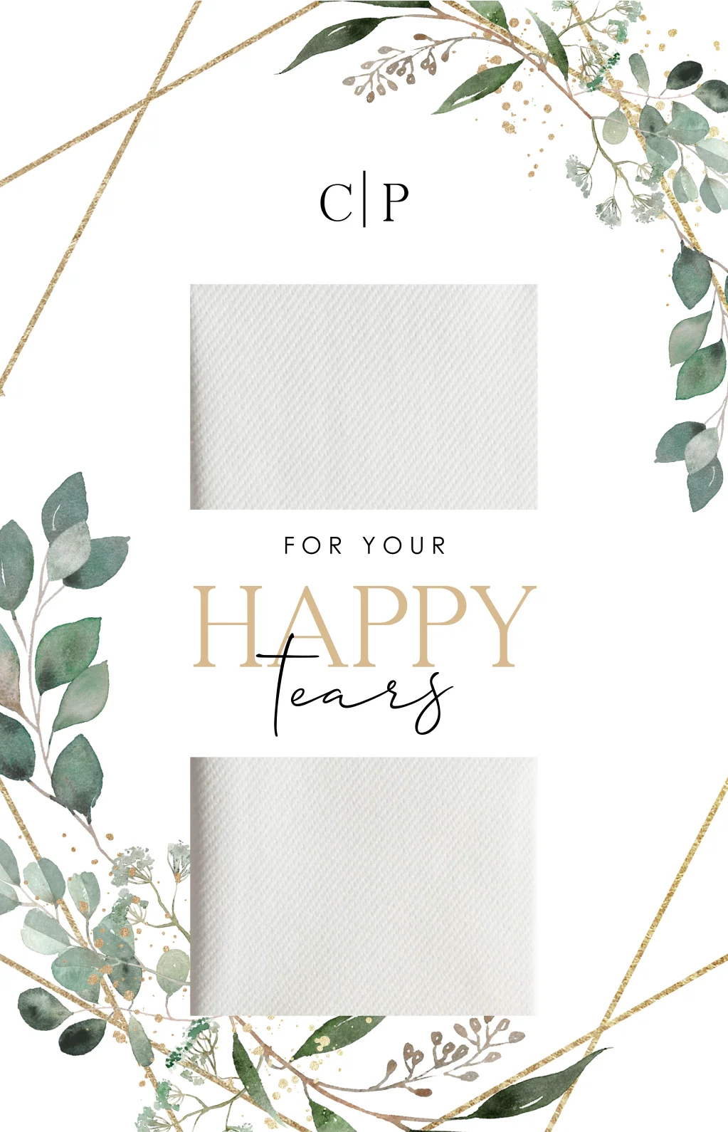 Jullie gaan trouwen! Dat zorgt altijd voor de nodige tranen van geluk. Verras jullie gasten met deze happy tears insteekkaart in dezelfde stijl als jullie trouwkaart!