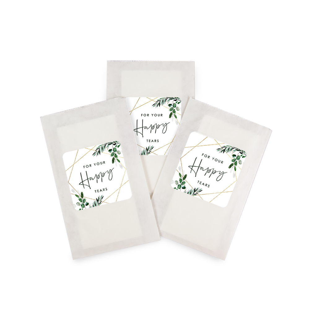 Plak deze stickers op een pak zakdoekjes. Zo heb je een ontzettend leuk cadeautje voor jullie bruiloftsgasten. Bewerk de sticker gemakkelijk in de editor.