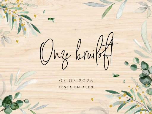 In deze stijlvolle wedding memory box bewaar kun je mooie herinneringen aan jullie trouwdag bij elkaar bewaren. Langs de rand staan getekende waterverf takjes. Deze herinneringsdoos is gemaakt van grenen hout, heeft greepgaten en een vastzittende deksel met afgeronde hoeken. Je kunt de bovenzijde van de box, de deksel, naar wens personaliseren in de editor. Zo onwijs leuk!