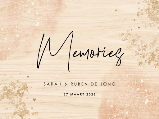 Bewaar de mooie herinneringen aan jullie trouwdag in deze stijlvolle houten bewaardoos, trendy! De memory box is in dezelfde stijl als de trouwkaart met de goudspetters en roze waterverf. Deze herinneringsdoos is gemaakt van grenen hout, heeft greepgaten en een vastzittende deksel met afgeronde hoeken. Je kunt de bovenzijde van de box, de deksel, naar wens personaliseren in de editor. Zo onwijs leuk!