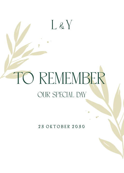 Een houten gastenboek in groen met olijftakjes. Het boek heeft 2 ringen om zelf binnenwerk in te bundelen.