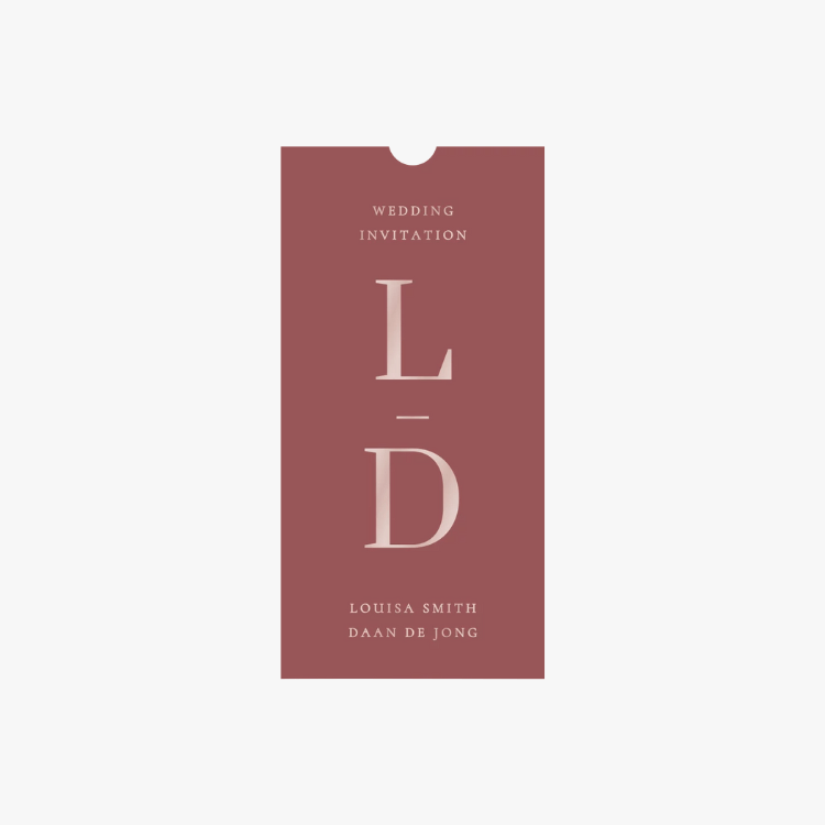 Jullie bruiloft moet van A tot Z kloppen! Verras jullie gasten met een uitnodiging verpakt in een inschuifhoesje. De kleuren en tekst pas je gemakkelijk zelf aan in de online editor.