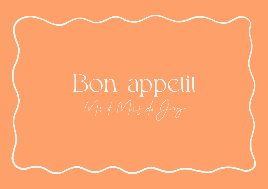 Deze vrolijke placemats maken je bruidstafel nóg leuker! De tekst pas je zelf eenvoudig aan in de editor. Maak de tafelsetting van jullie bruiloft hiermee compleet, naast o.a. menukaarten en naamkaartjes op de dinertafel.