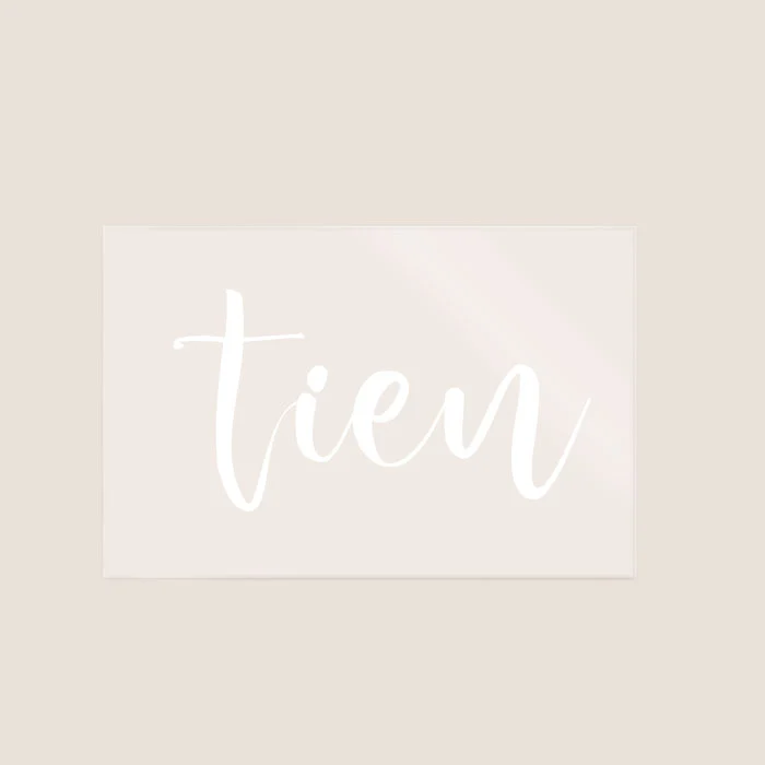 Maak de tafelsetting op jullie bruiloft compleet en bestel doorzichtige tafelnummers in de stijl van jullie trouwkaart. Gedrukt op helder transparant acryl, ook wel plexiglas genoemd, van 2 mm dik.