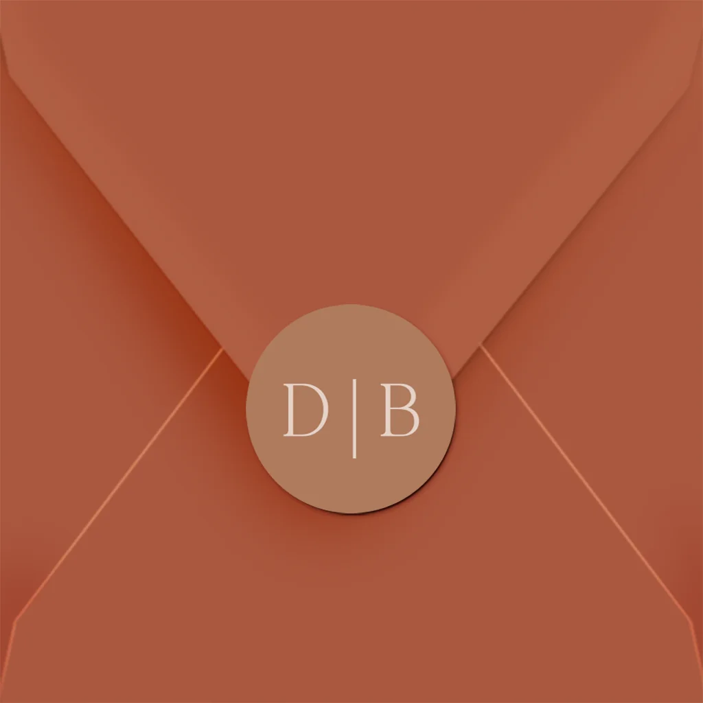 Sluitsticker voor trouwkaart met initialen in bruin | 25 stuks
