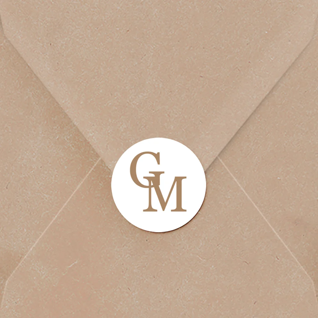 Sluitsticker trouwkaart met initialen in bruin