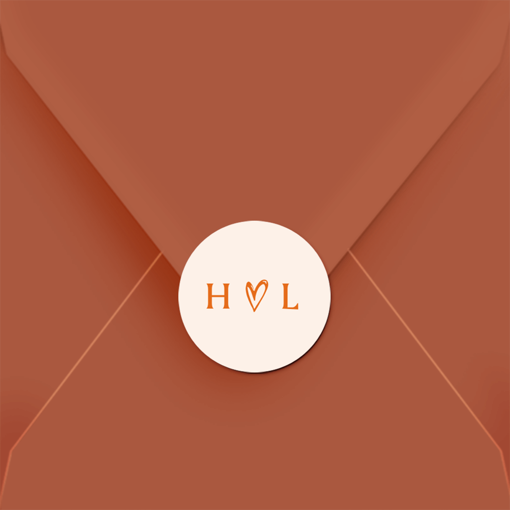 Sluitsticker trouwkaart met initialen in oranje | 25 stuks
