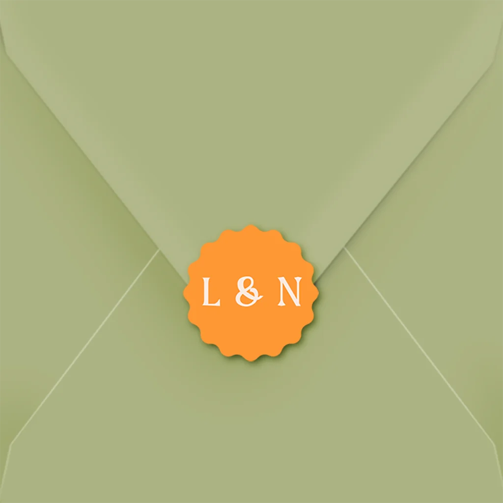Maak een feestje van jullie trouwpost met deze originele oranje sluitsticker! De golvende randjes maken de sticker extra speciaal.
