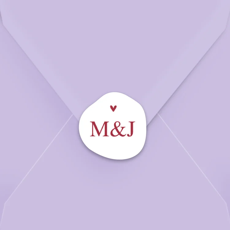 Maak een feestje van jullie trouwpost met een envelop met daarop een bijpassende sluitsticker! Je kunt de sticker zelf gemakkelijk bewerken in onze editor.