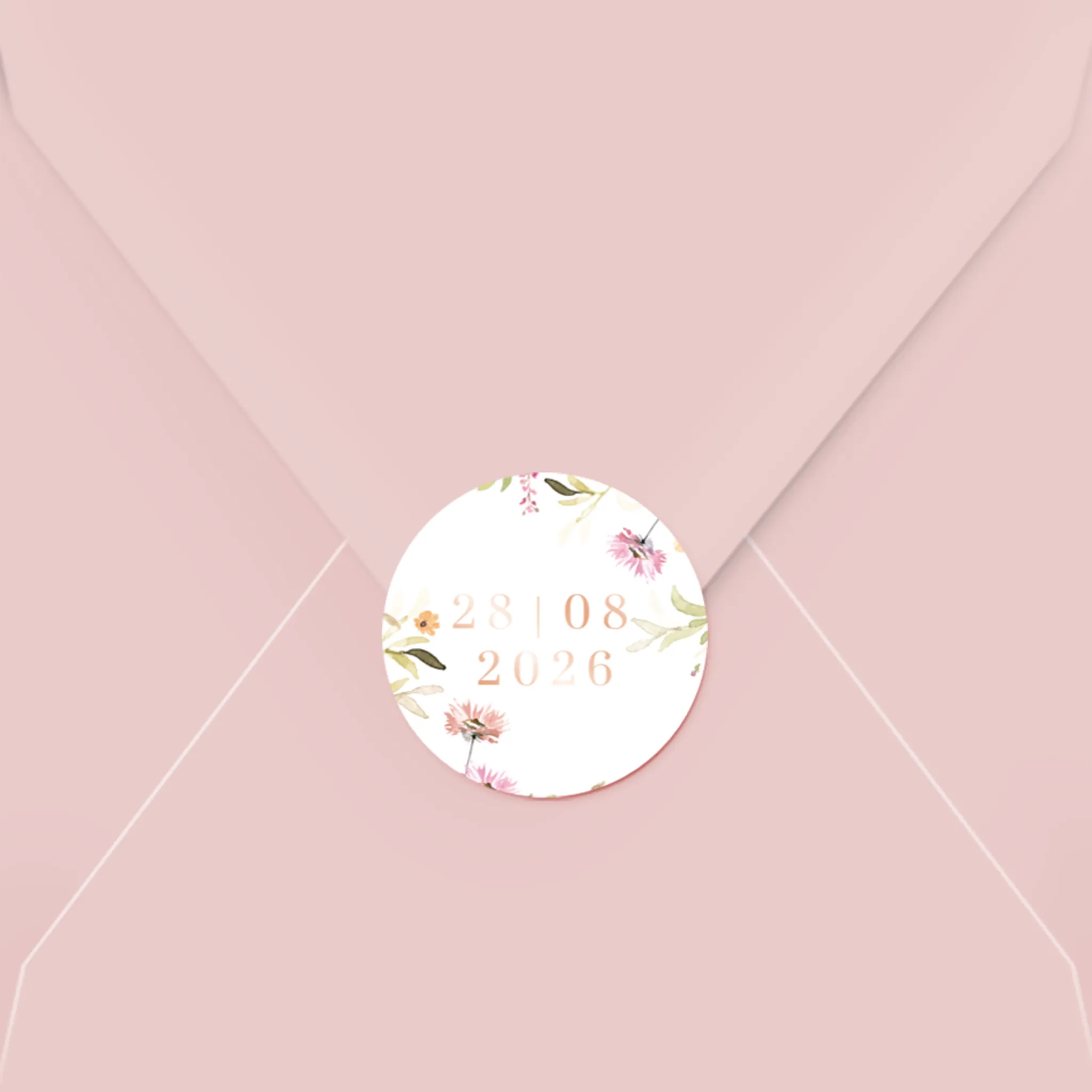 Sluitsticker met veldbloemen en roséfolie | 25 stuks