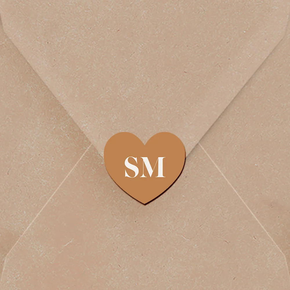 Sluitzegel trouwkaart in neutrale kleuren met initialen | 30 stuks