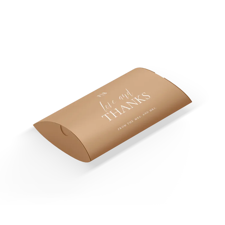 Bedank de gasten op jullie bruiloft met een gondeldoosje helemaal in stijl van jullie trouwkaart! Personaliseer de buitenzijde van het doosje en vouw 'm thuis in elkaar. Je kunt het doosje vullen met bijvoorbeeld snoepjes, koekjes of een andere verrassing.