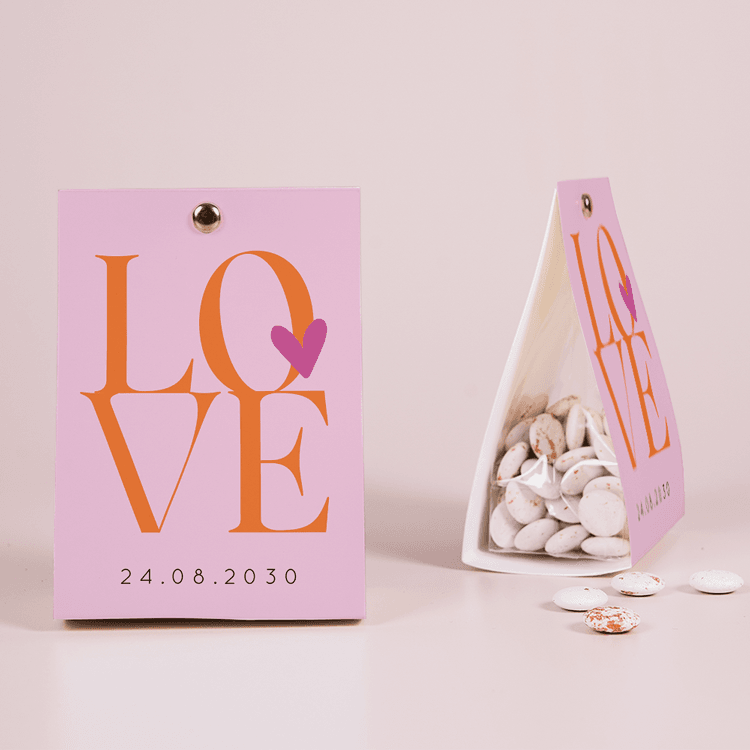 Bedank de gasten van jullie bruiloft met een snoepzakje in de stijl van jullie trouwkaart!