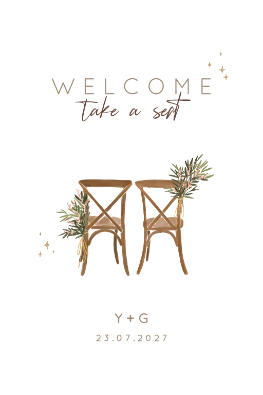 Een welkomstbord in dezelfde stijl als jullie bruiloft, hoe gaaf is dat?