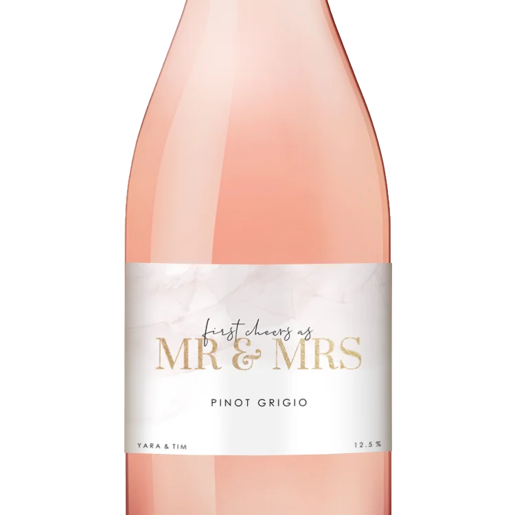 Een wijnetiket in de stijl van jullie trouwkaart, hoe bijzonder! Pas het etiket gemakkelijk aan naar jullie smaak in de editor.
