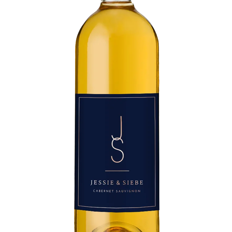 Minimalistisch wijnetiket met initialen in rosefolie - per 5 stuks