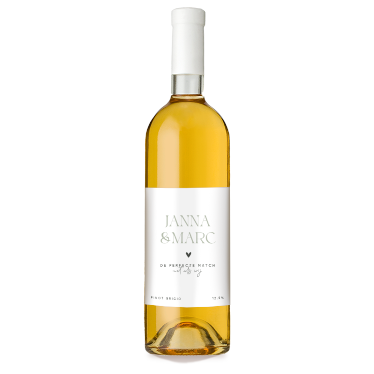 Maak dit wijnetiket helemaal zelf in de online editor. Voeg eventueel tekst en andere elementen - ook in goudfolie - toe. Zo maak je het wijnetiket helemaal eigen.