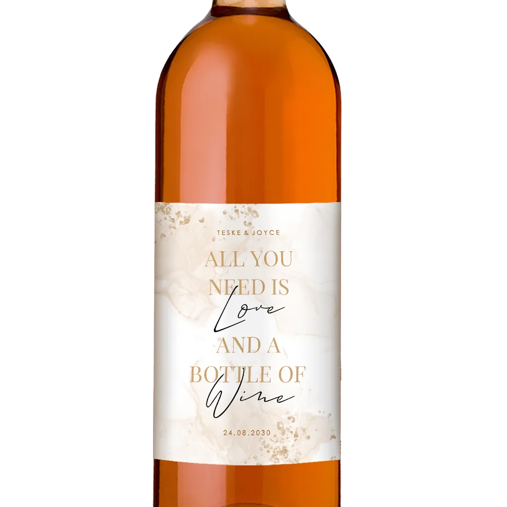 Wijnetiket met marmeren achtergrond en gouden spetters - per 5 stuks